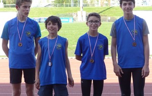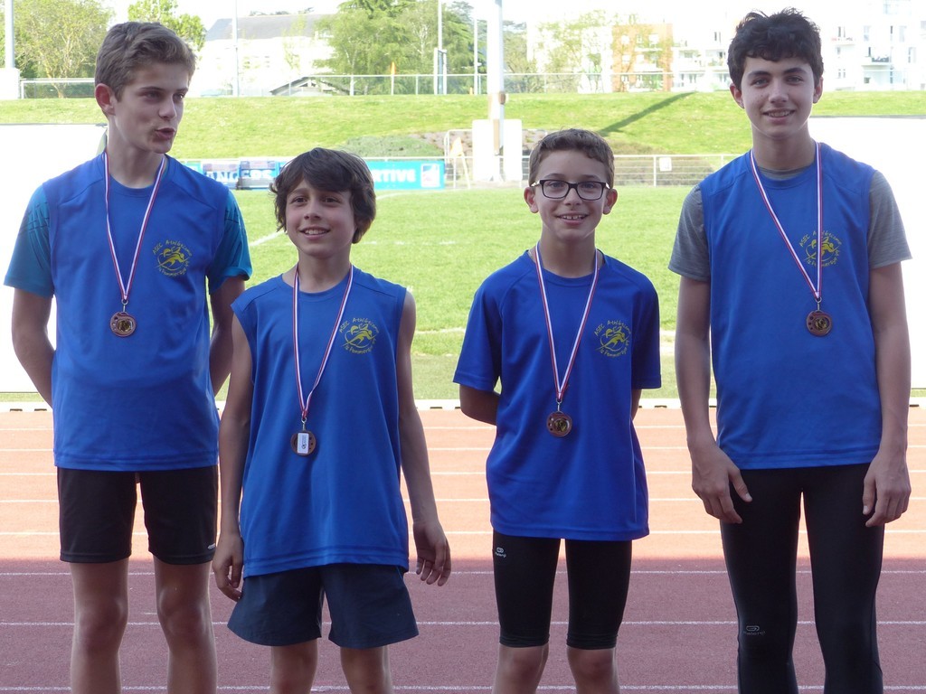 Les athlètes ont commencé la journée par 2 magnifiques relais. La première équipe composée de, Evan LUCAS, Maël GUILLON, Antoine CHIRON et Armand PETITEAU, a terminé 3ème de sa série avec un temps de 38’’38. La deuxième équipe composée de Silas BOUHALLIER, Oskar GUIBERT, Pierre RORTEAU et Alexis BERNARD, a terminé 1ère de sa série avec un temps de 33’’94 qui leur permet de monter sur la 3èmemarche du podium !!