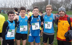 Enfin en senior dans une course une nouvelle fois très relevée le premier du département finit seulement 33ème. Emilien après des dptx moyens a retrouvé des jambes pour finir 48ème suivi de près par Florian 52ème ( 7 et 8 espoirs). Alexis a souffert sur la fin mais finit tout de même 62ème, Alexis Granneau 102ème complète l'equipe Pierre et Nicolas finissent 155 et 192 ème et se qualifient aussi grâce à l'equipe qui finit 13 ème